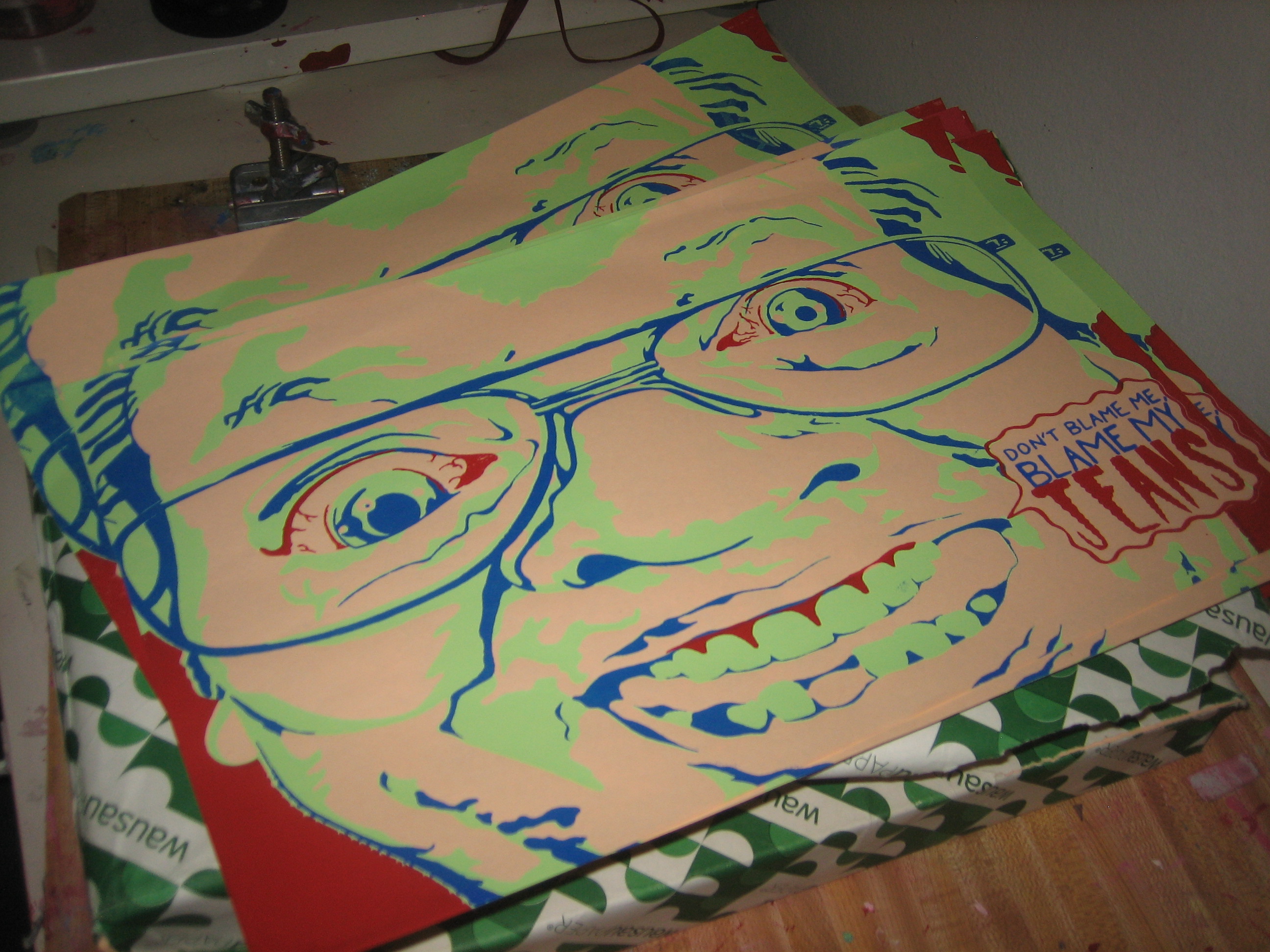 I also screen printed this poster by Amy Searles. I love her design! It was really made to be screen printed. I tried to do a full bleed and it got kinda a messy. At 11×17, it’s the biggest print I’ve done. My muscles are aching.