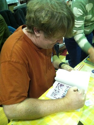 Tim Hensley, signing Ticket Stub (new from Yam Books!) Tim was one of the special guests of the show so many prestigious nerd boys came to pay homage. I hadn’t met him before. What a sweet guy!