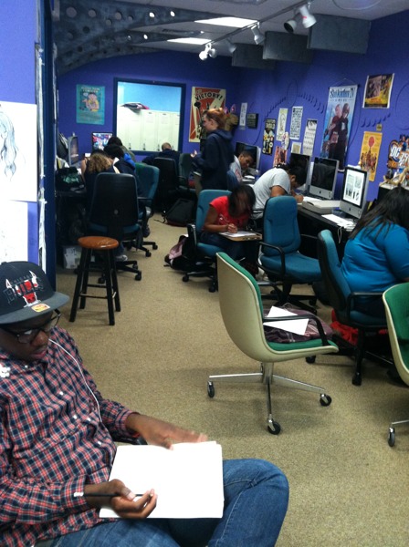 I took a day trip to Atlantic City to offer a workshop at ChARTer Tech High School for the Performing Arts. What a great school! I was invited by their animation teacher, Kyle Warren, who is a regular CCS workshop attendee and fellow cartoonist. Check out his amazing animation classroom! These are some lucky students. And smart, funny, and talented.