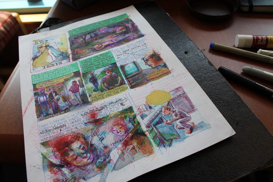 Check out this crazy page Jesse is working on. Insider tip: to get that special air brush technique, use spit!