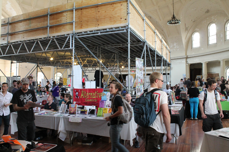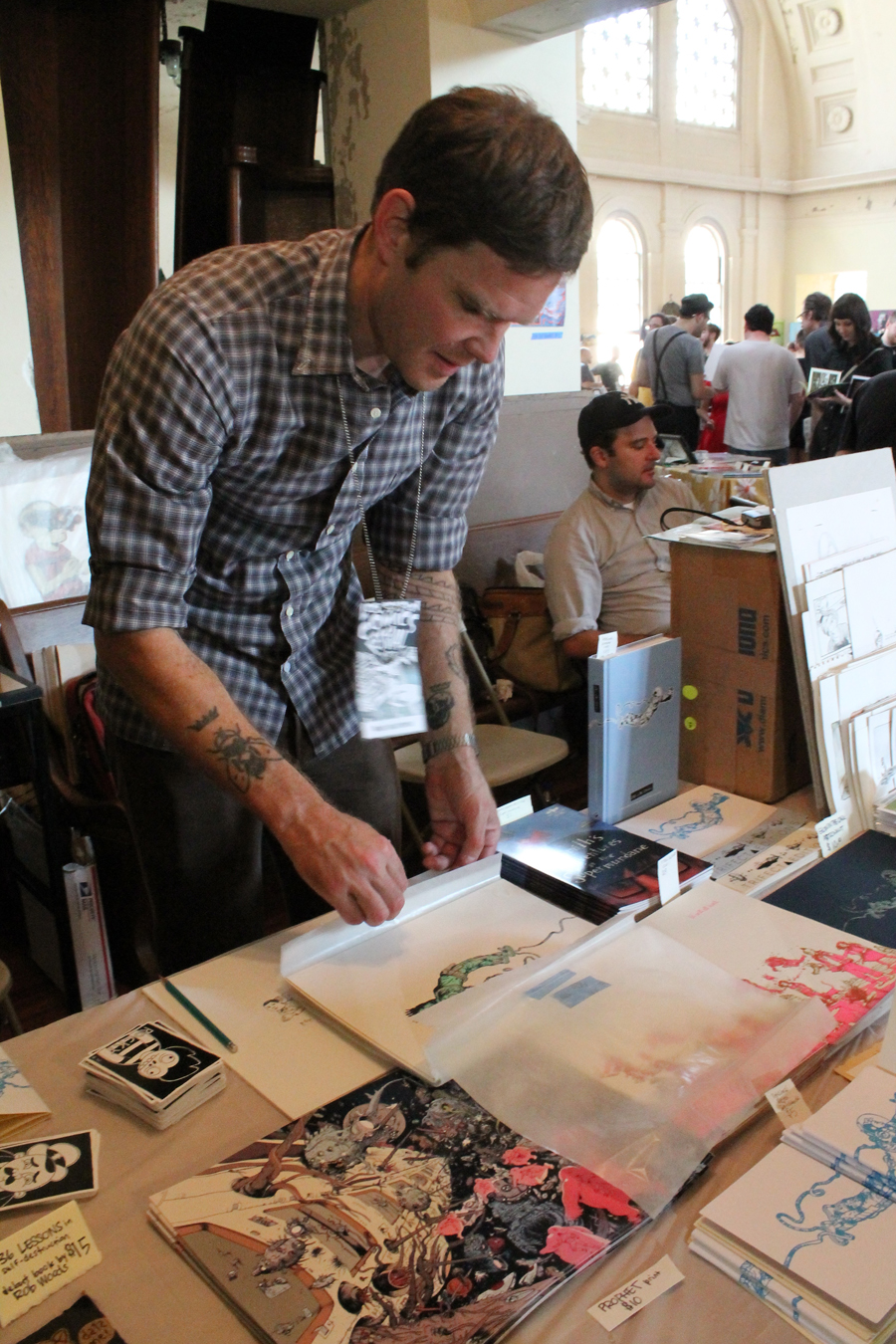 The festival was held in the Rotunda, a beautiful (if somewhat haunting and decrepit) old church. I loved it! Unfortunately, it wasn’t air conditioned and the weather was downright balmy (in October, no less!) I saw a lot of sweaty customers and cartoonists. But everyone was friendly. Maybe Philadelphians are nice than New Yorkers.