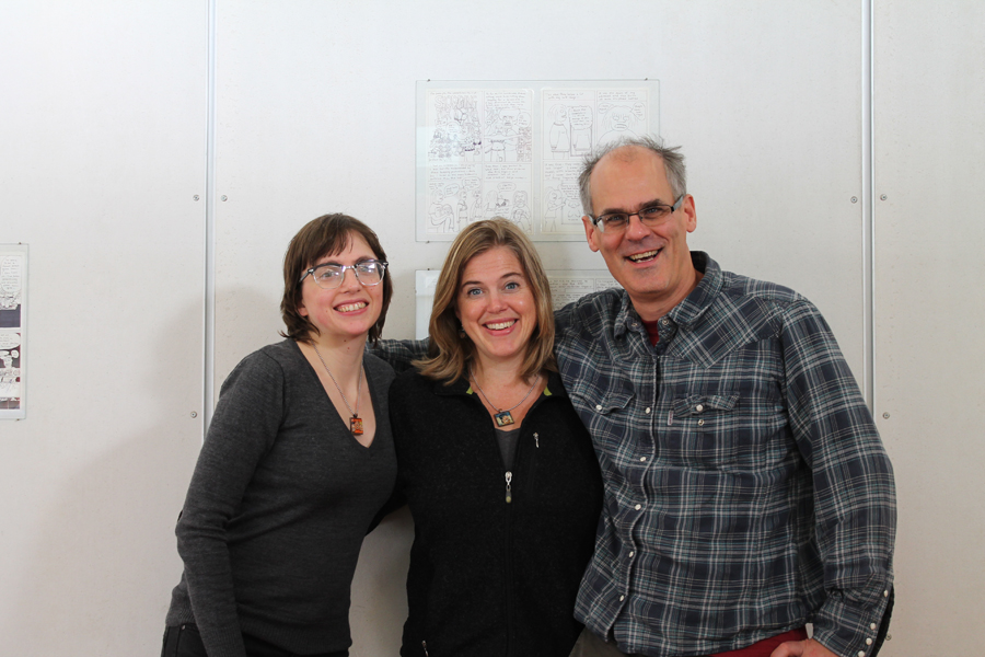 I had a sweet, but way too short (less than 24 hour!) visit to The Center for Cartoon Studies last weekend. I was there to give a talk at the opening of Ariel Bordeaux’s new exhibition. It was great to see Ariel again, and we also got some quality time with James Sturm.